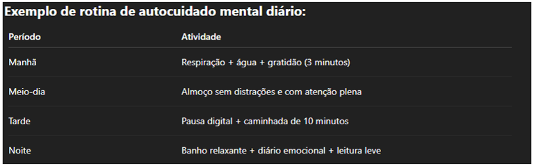 A saúde mental no dia a dia não depende de tratamentos caros ou soluções mágicas. Ela começa no simples. No silêncio. No cuidado consigo. No “não” que você diz para o excesso e no “sim” que você dá à sua paz.